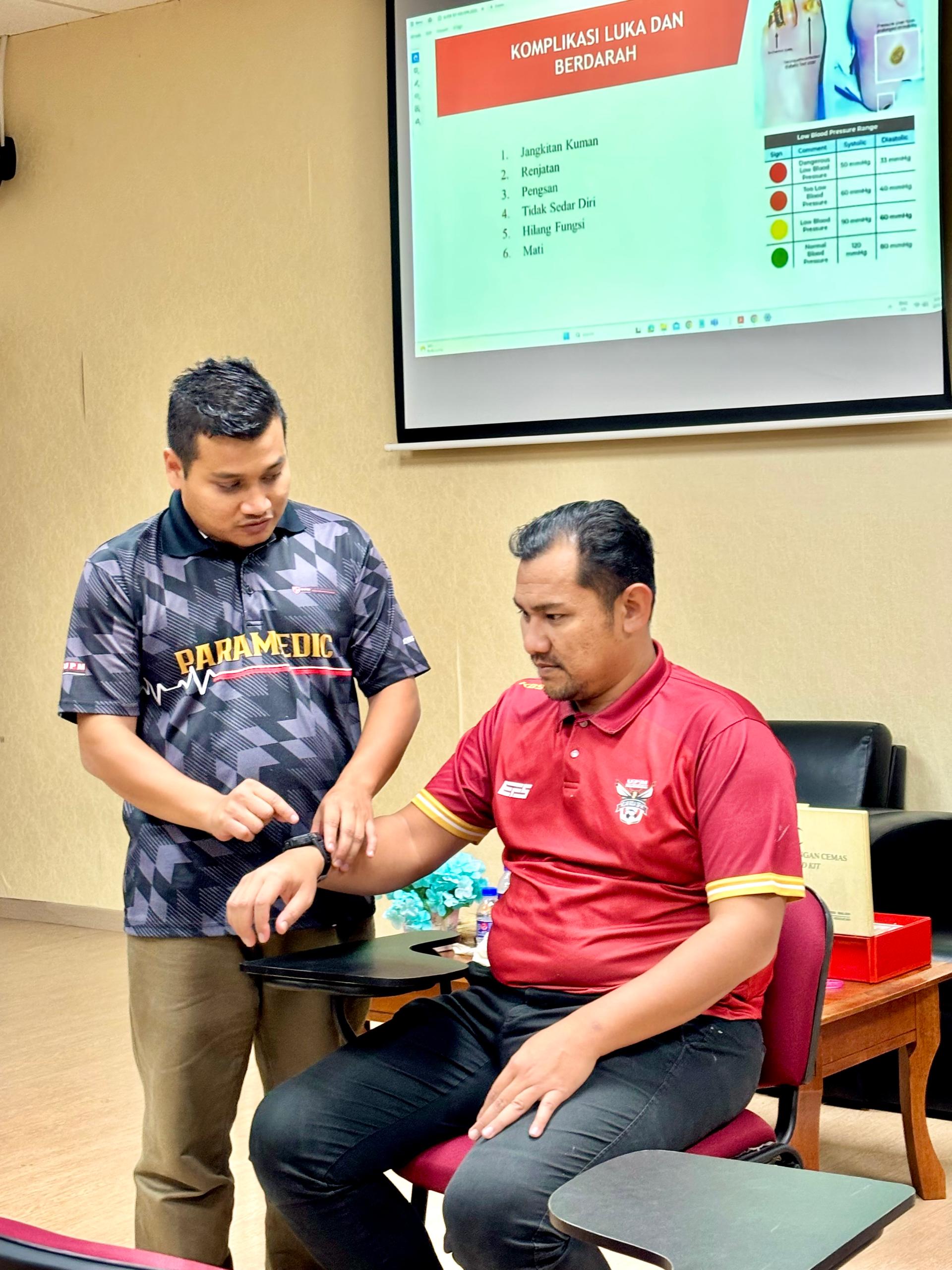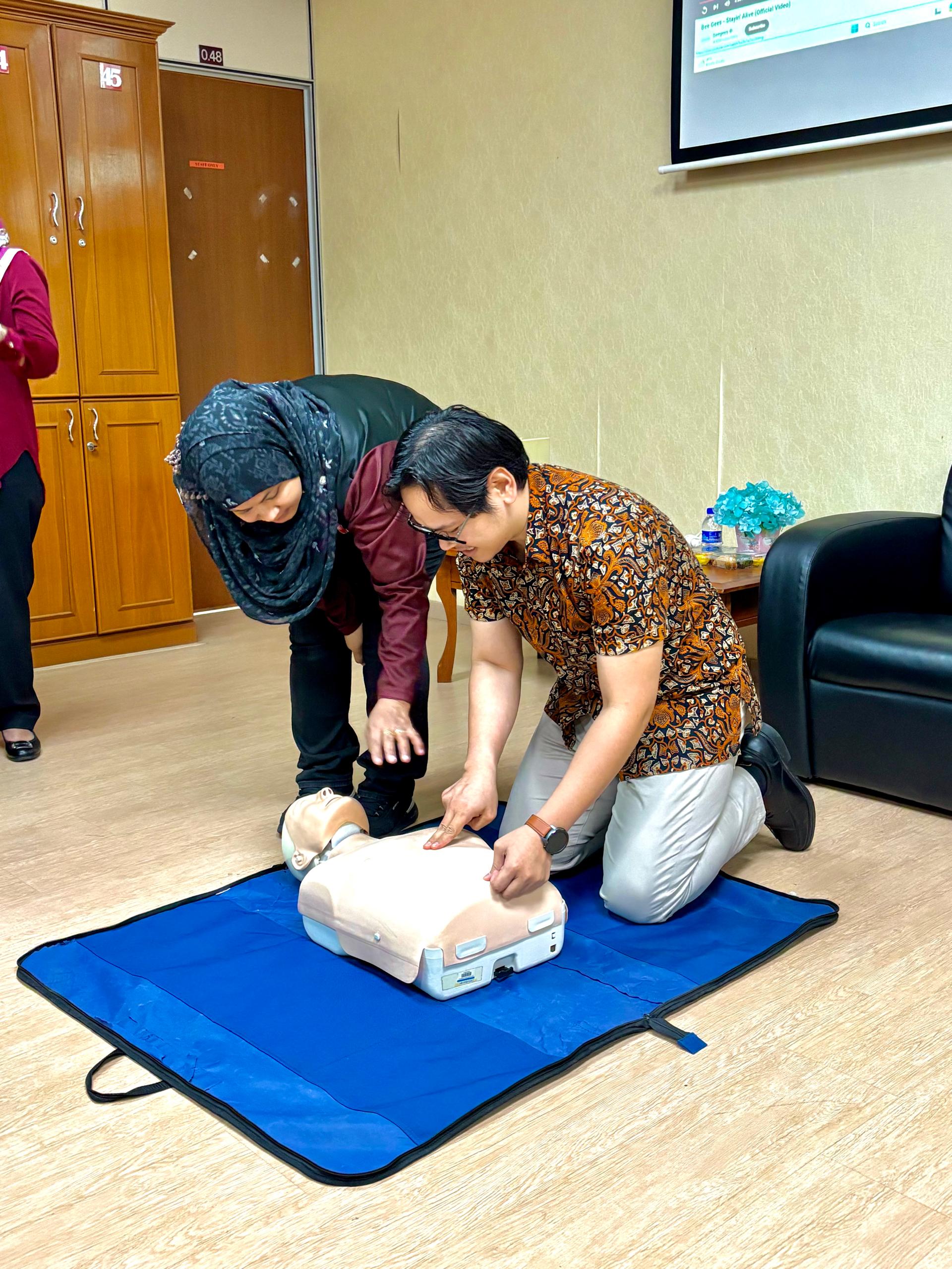 The course was conducted by experienced trainers from the University Health Centre (PKU), namely Ms. Norfazilah Abdullah, Senior Administrative Assistant / BSMM Trainer and Mr. Muhammad A'Thuf bin Azhar, Staff Nurse.