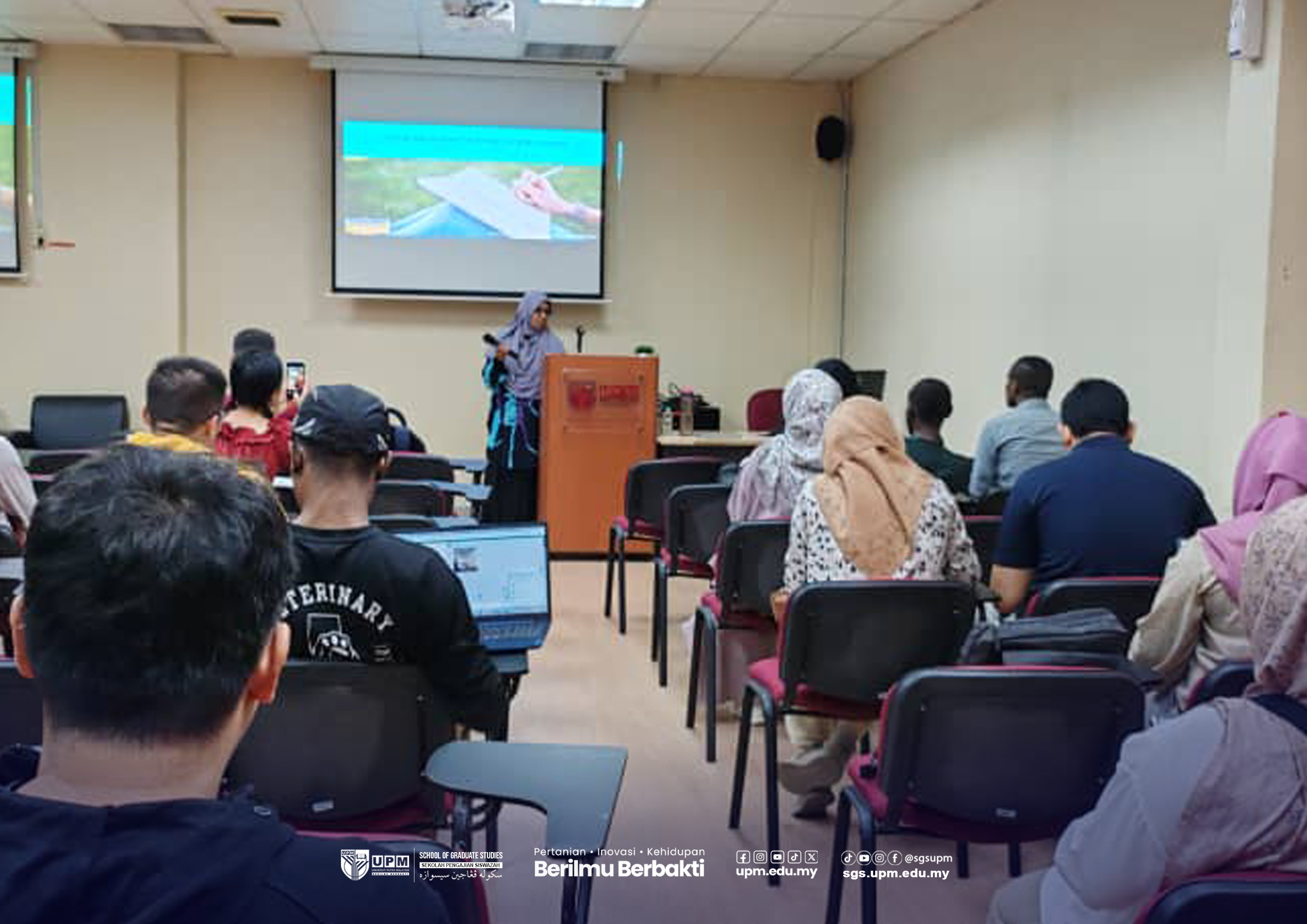 February 5th, 2025 – The School of Graduate Studies (SGS), through the Putra Sarjana Learning Support Program, organized a seminar on Stop Procrastinating your Thesis Writing conducted by Assoc. Prof. Dr. Radhiah Shukri, Deputy Dean (Academic and Student Affairs), Faculty of Food Science and Technology, UPM at Putra Sarjana Room, School of Graduate Studies UPM on 10.00 am. The two-hour seminar was part of the Putra Sarjana Seminar Series, which provides various information, tips, and skills to UPM postgraduate students. The positive response from students and participation from students outside the university reflected the significance of the topic.